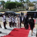 La Guardia Presidencial le presentó armas al próximo mandatario, que acompañado de Raquel Peña, la nueva vicepresidenta de la República, ascendió las escalinatas del Palacio Nacional.