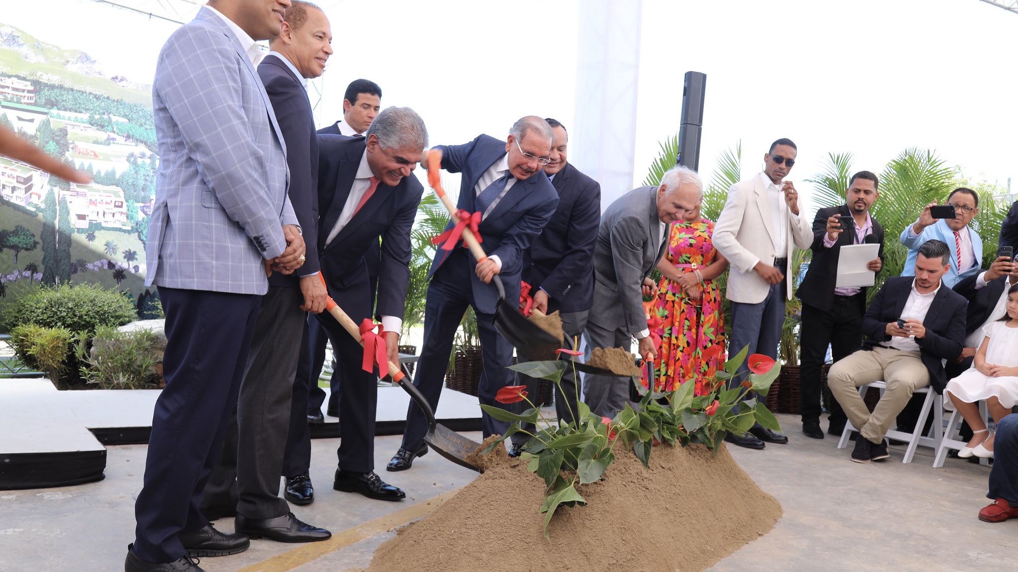 La Vega.- El presidente Danilo Medina asistió al primer palazo del proyecto inmobiliario Alta Vista Mountain Village que será desarrollado